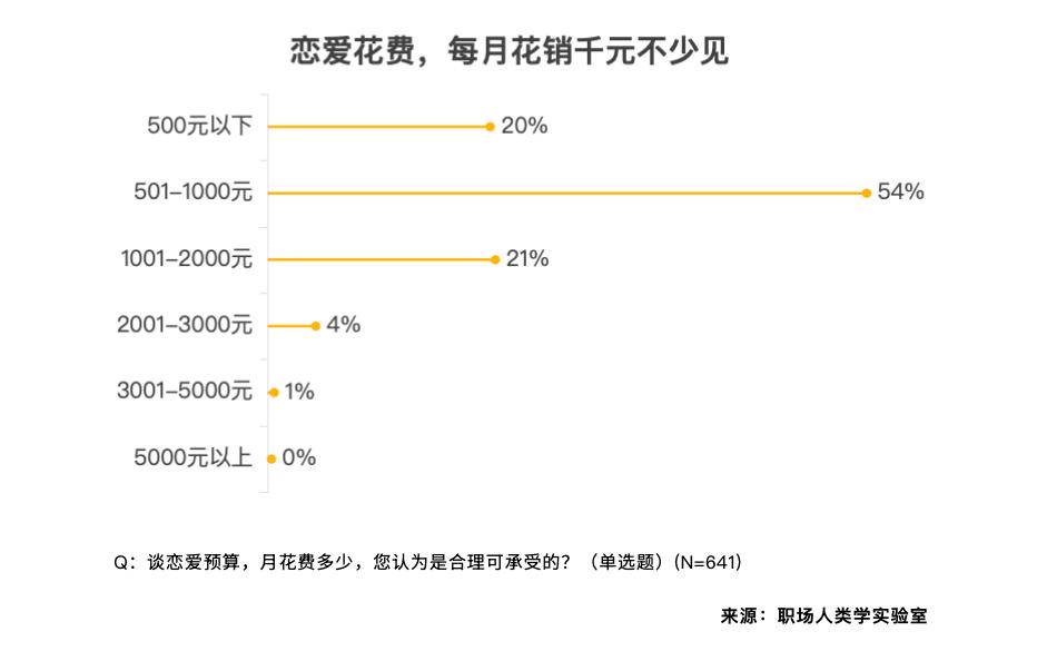 更有5%的受访者正在爱情上每月有跨越 2000 元的高预算。