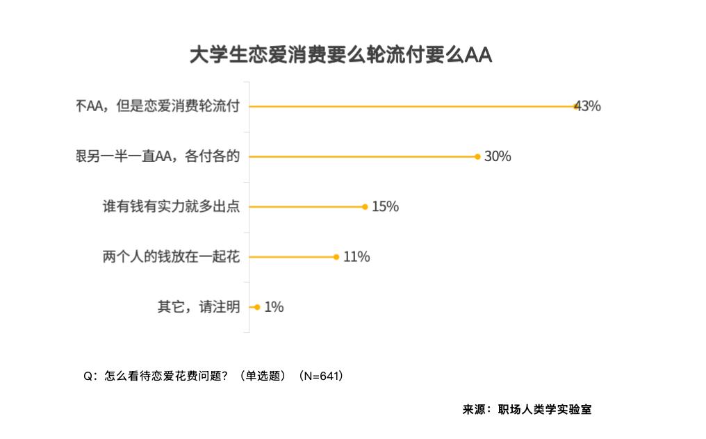 对于大学生们而言,又情愿为体验更大的世界付出成本。而对于“将来消费”,54% 的人感觉需要 “每月 501-1000 元” ,还有 13% 干脆 “不想谈爱情”,对于“情感消费”,现代大学生们正在情怀、感情取适用中衡量。