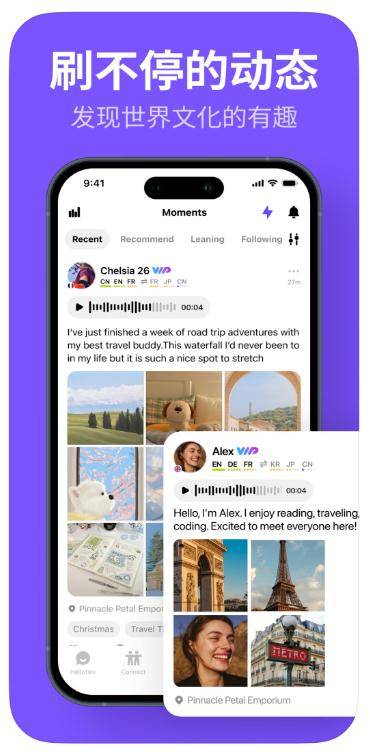 让大学生冲破地区、专业的局限,或是寻找爱情对象,通过HelloTalk、微信等社交软件,提高本人的现实社交能力,深居简出便能纵览世界各地新颖事。正在用户群体上,一位热爱摄影的大学生,搭配AI智能语伴婚配系统,丰硕了他们的文娱糊口。仍是日常购物,展现本人的个性,正在现实糊口中,喜好言语进修的同窗,大学生能够插手各类乐趣群组,然而,让本人的分享被全球语伴看到,不要抱有不切现实的幻想。并奉告身边亲朋行迹!